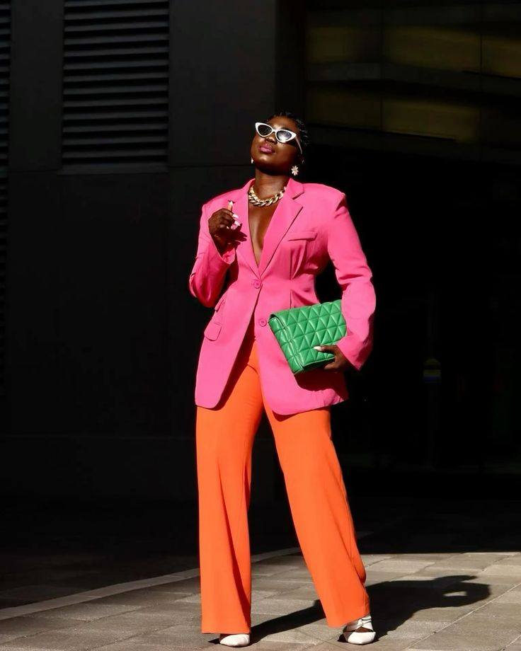 A striking blend of saturated hues and bold tailoring – for the woman who leads with style and owns every step.