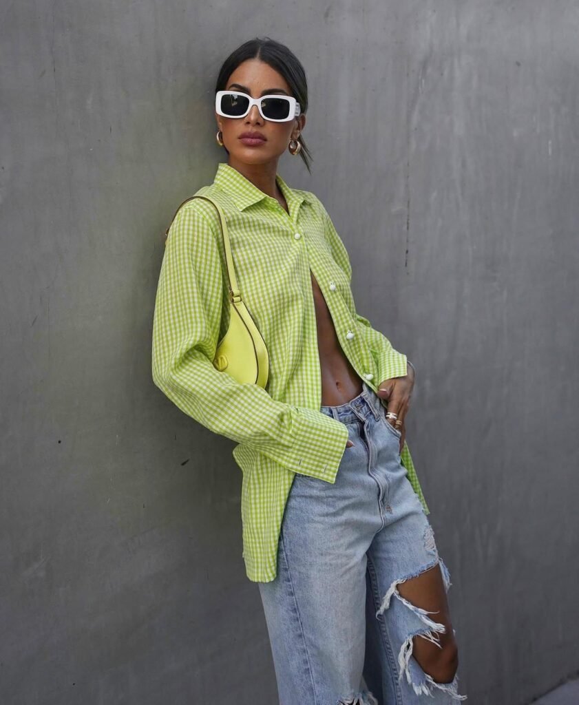 This bold take on a summer classic combines the sweetness of gingham with the punch of neon.
